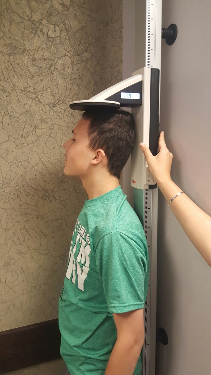 I took Nathan in to the Pediatrician for his well child visit a couple of weeks ago.  She was amazed at how tall he was.  He is a little over 5′ 7″ now and grew 3 inches in the last year.  He loves going to this Doctoe as she always wraps his arm up in a “cast”. He is off the charts in terms of height and weight for his age, which we all knew 😊.