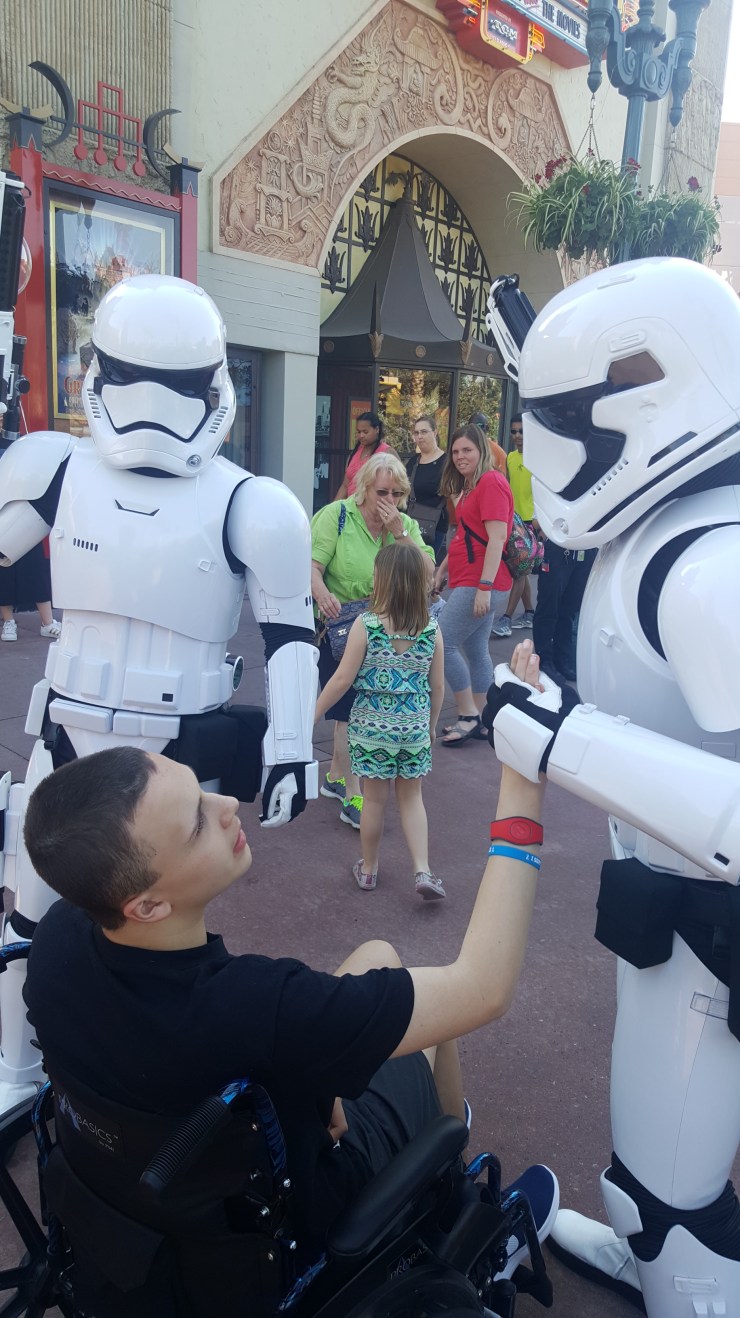 The first day we went to Hollywood Studios and unfortunately Jay was not feeling well, so he went back to the cabin to sleep a little. We went on all the rides, after we hit Star Wars first of course.  Once we got Nathan his first lightsaber it was as if his whole body calmed.  He just needed his “fix”.  We rode Tower of Terror ( he had not been on that since he was 5) , I should also say I stood in line and let the three of them ride while I waited at the bottom for them.πŸ˜‰. We also rode Rock’n Rollercoaster  (our favorite) and Toy Story Mania. We had a great day and really enjoyed spending some time together. Nathan met a bunch of princesses and proposed to all, who accepted of course!